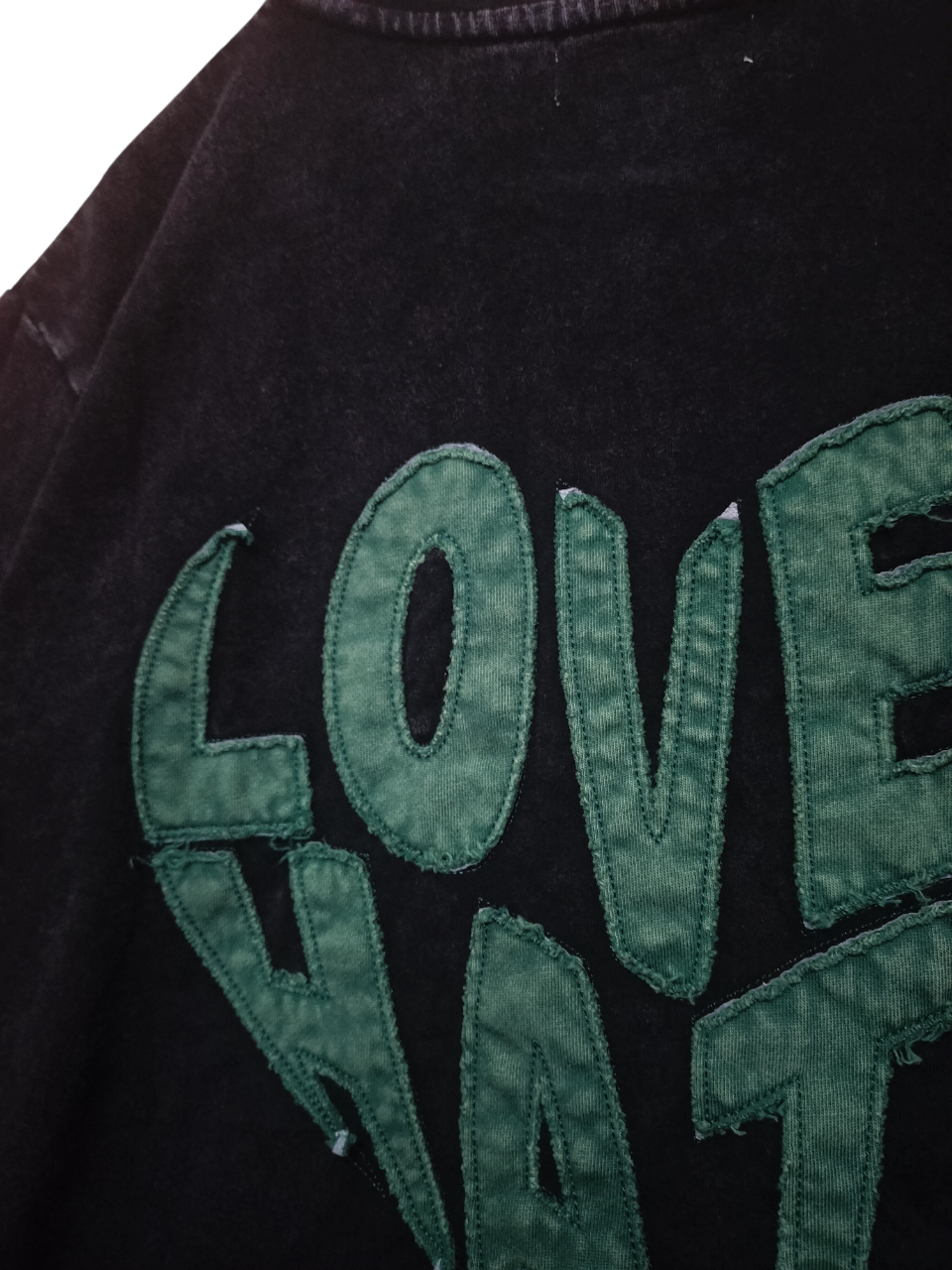 後身頃には裏毛素材をパウダー加工したアップリケを