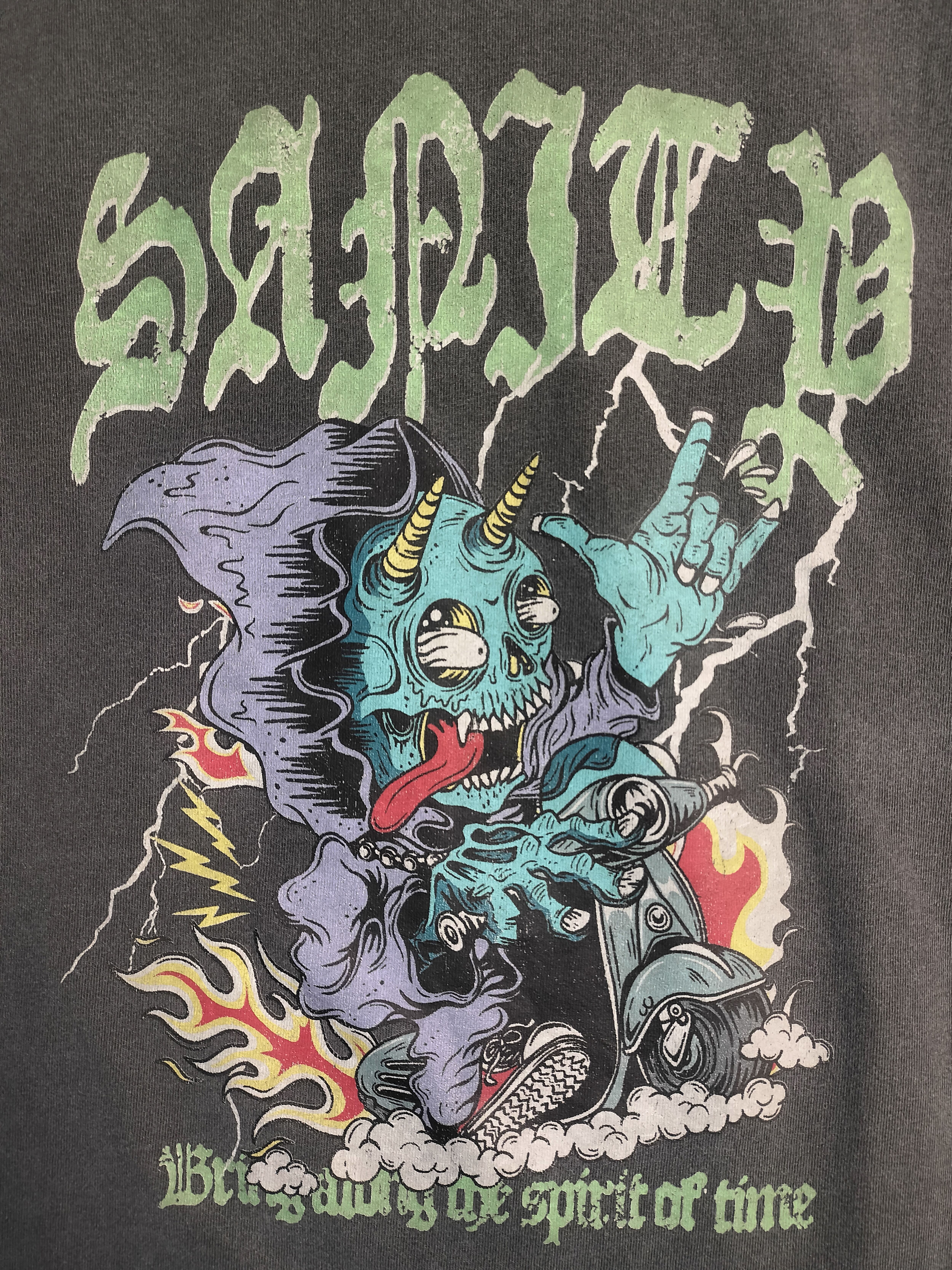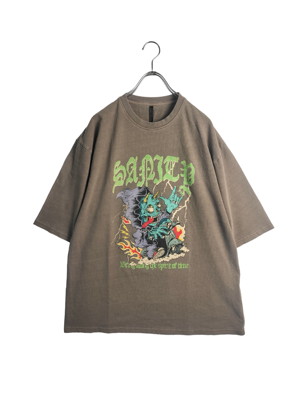 ピグメント加工という特殊な顔料で染色することで古着のような風合いを出したプリントTシャツ。着用、洗濯を繰り返すことで一層ユーズド感が増すアイテムです。ゆったりとしてシルエットで男女問わずユニセックスで着ていただけます。