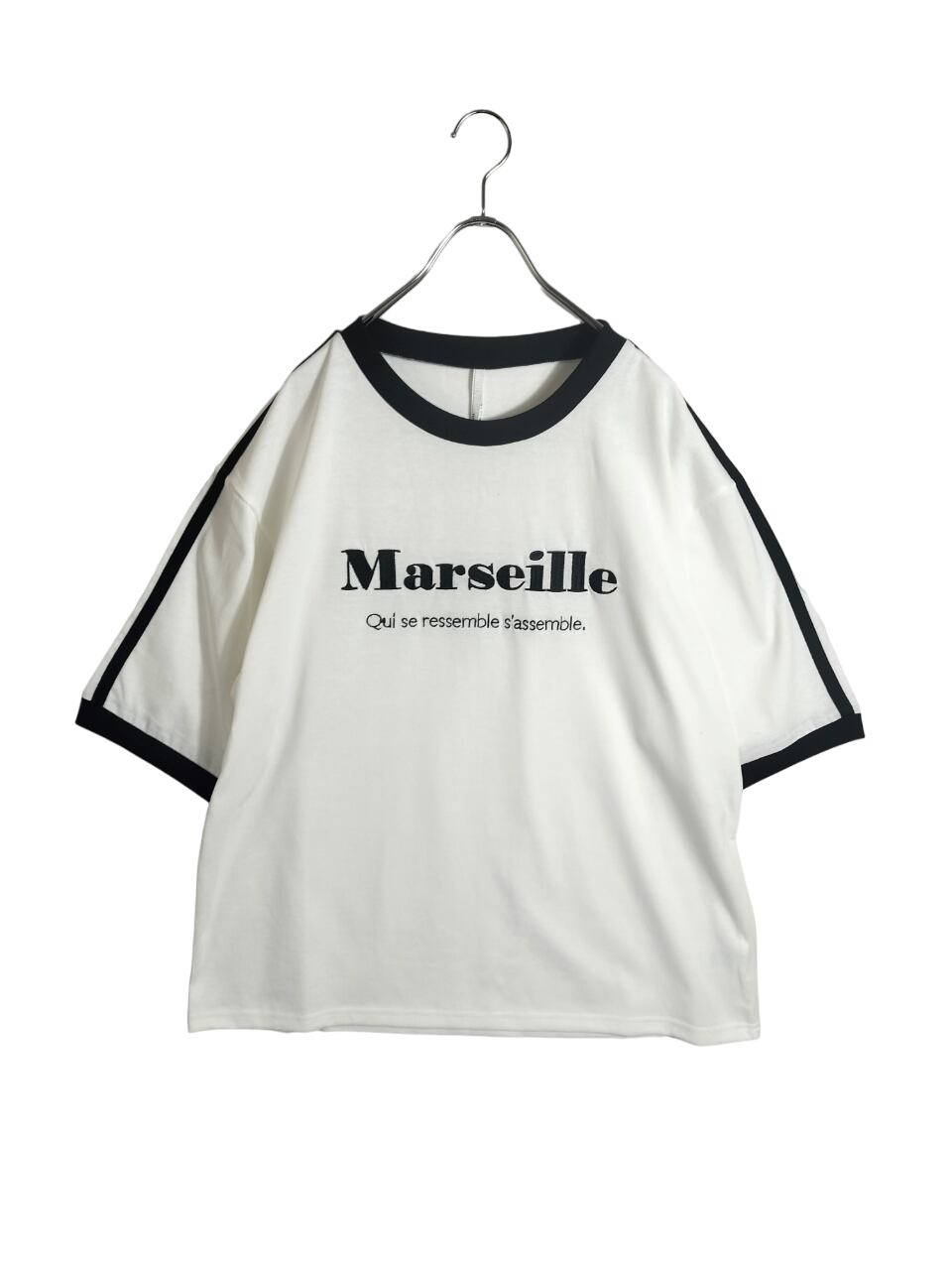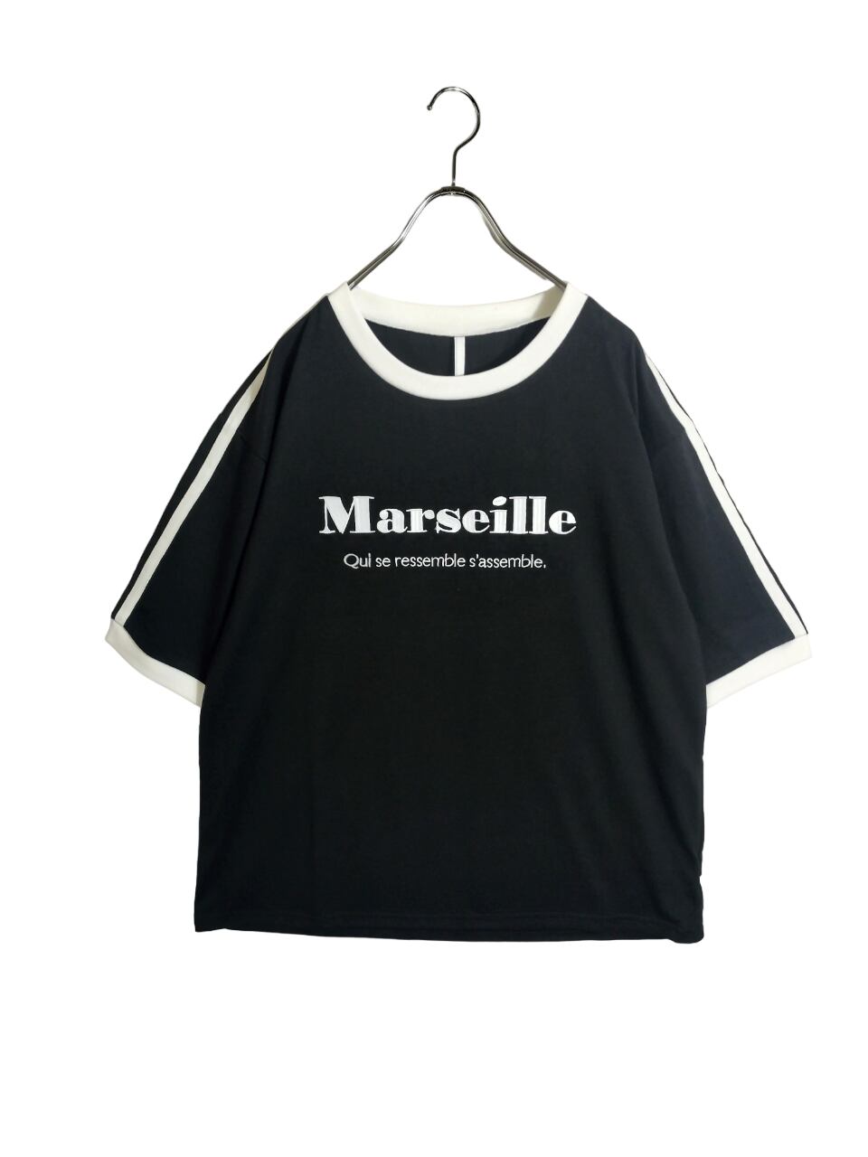 今季トレンドの「ブロークコア」にピッタリのライン入りリンガーTシャツです。