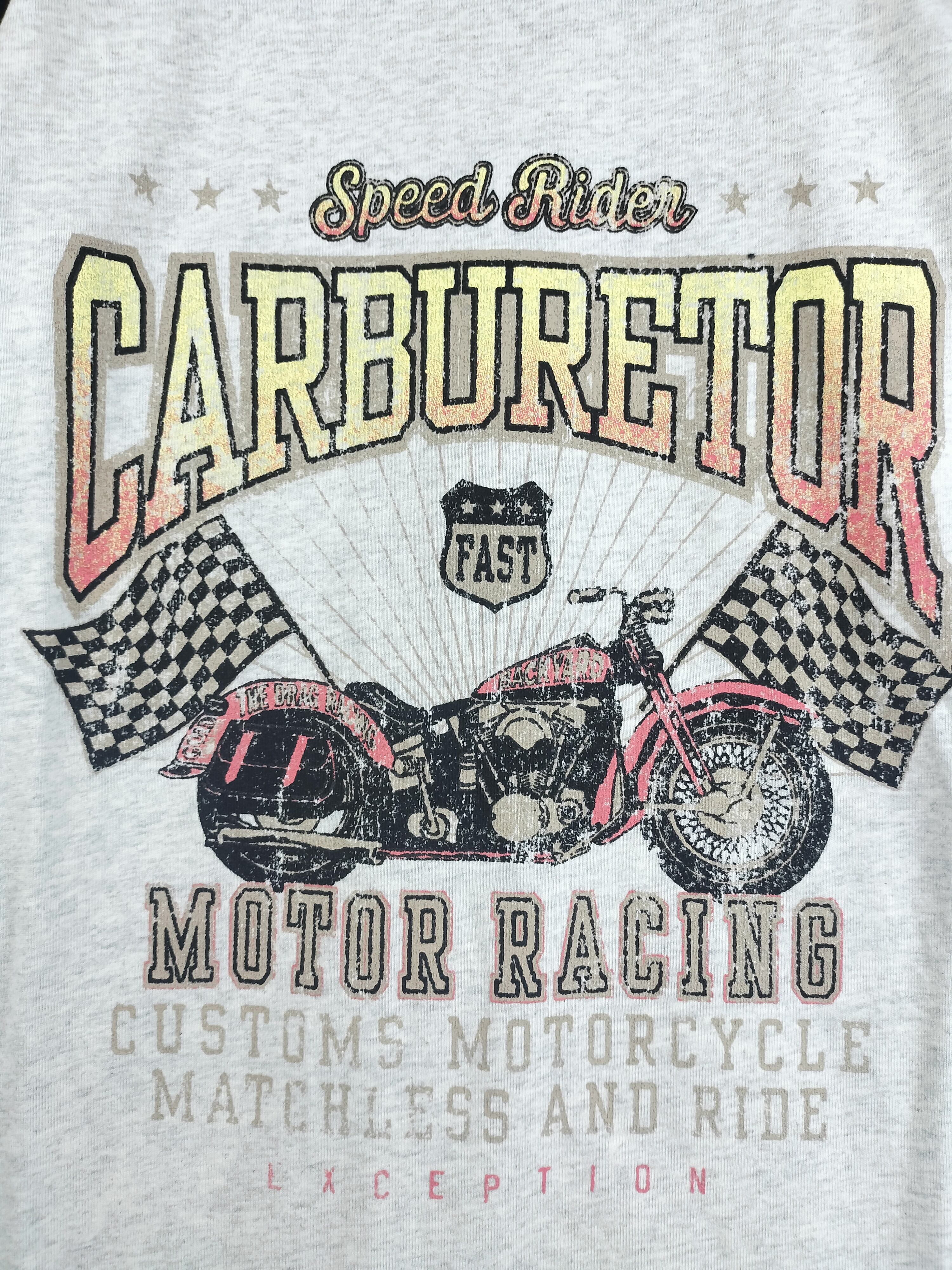 古着のようなモーターサイクル系のプリントが目をひく1着です。